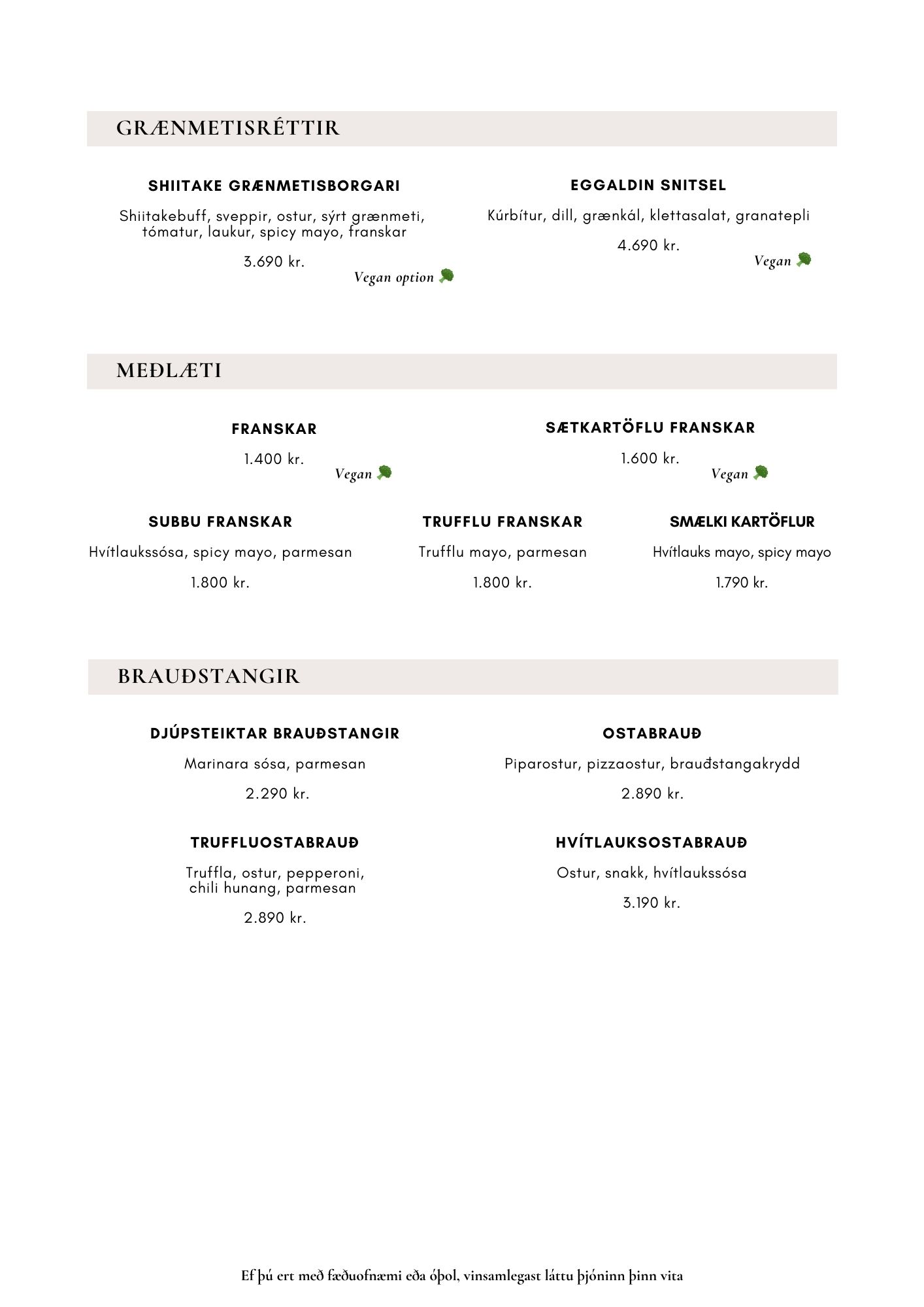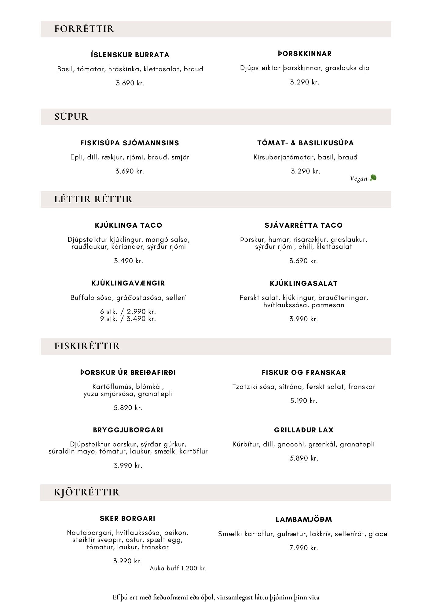 Matseðill / Menu